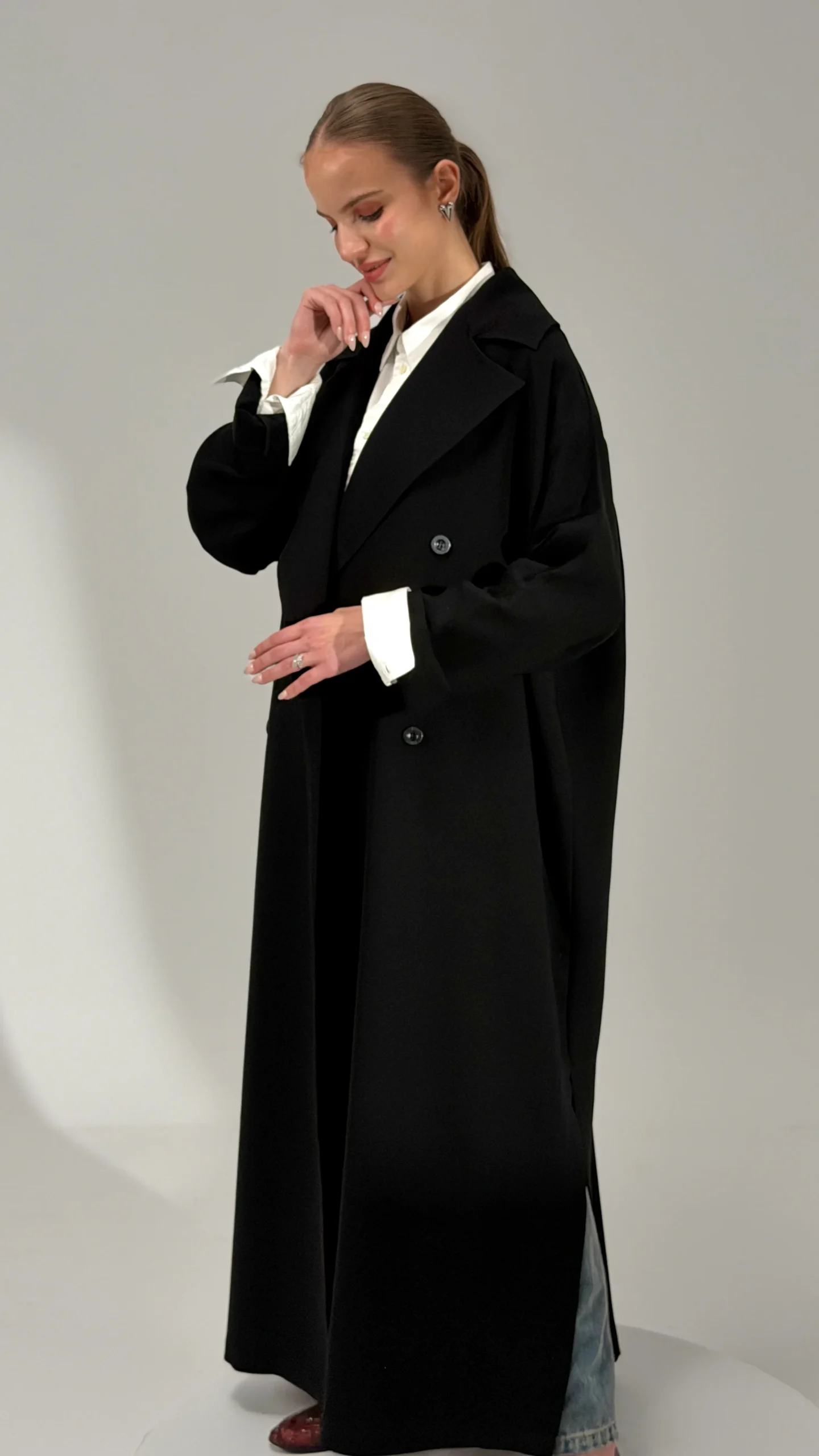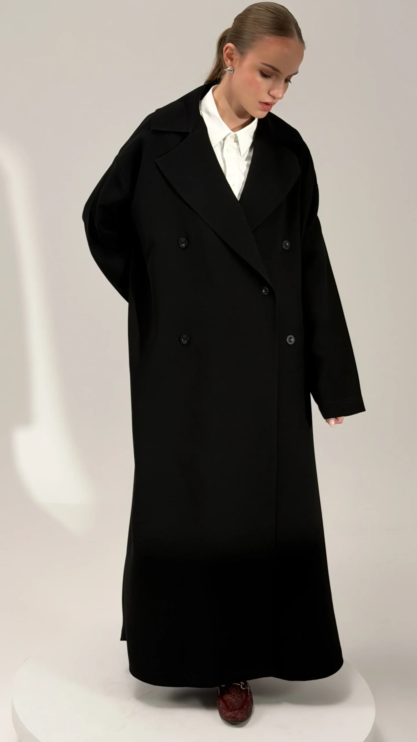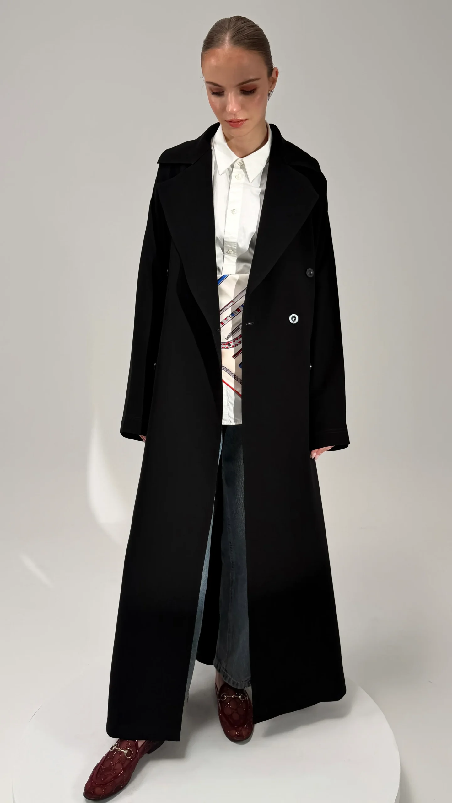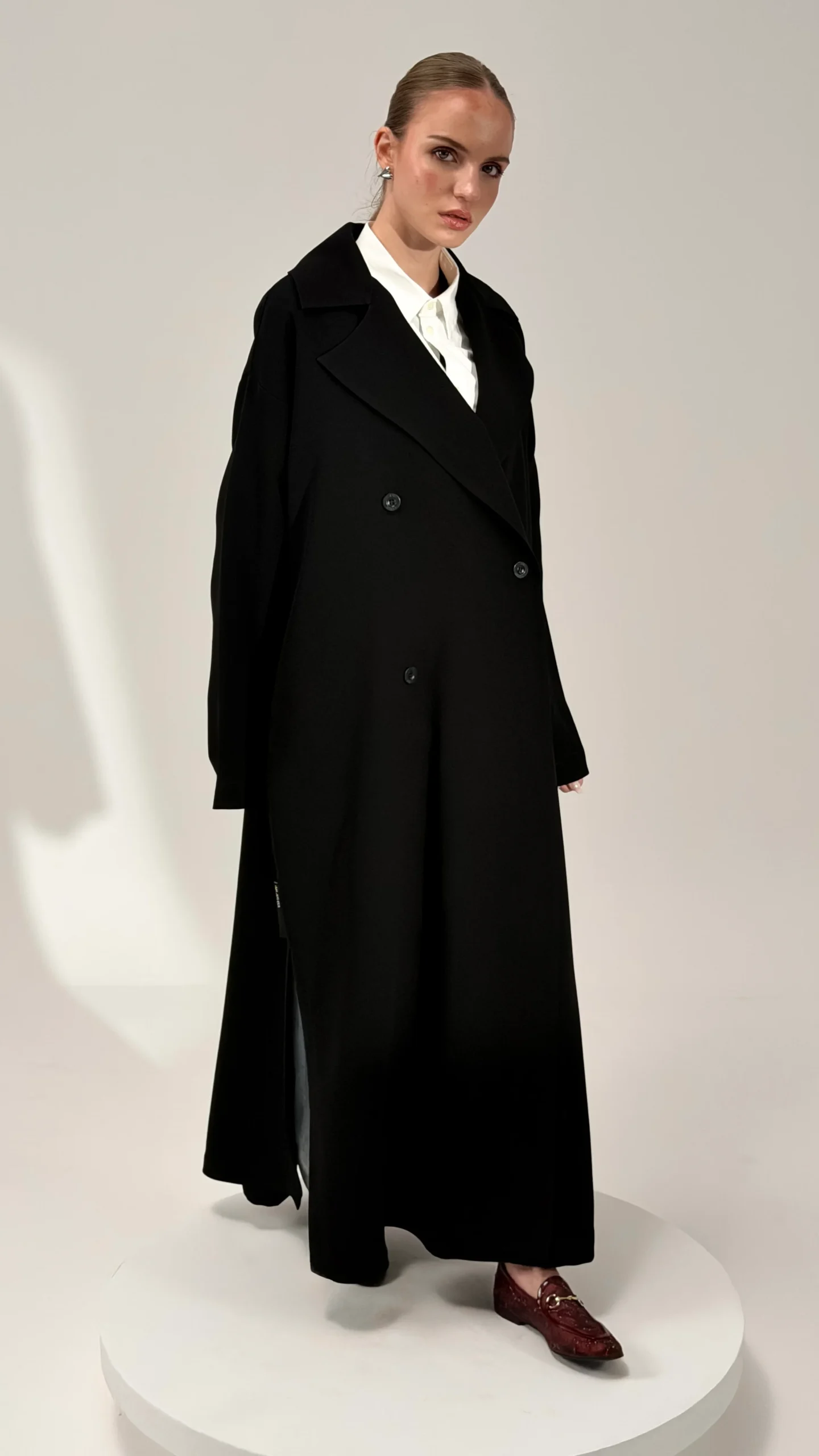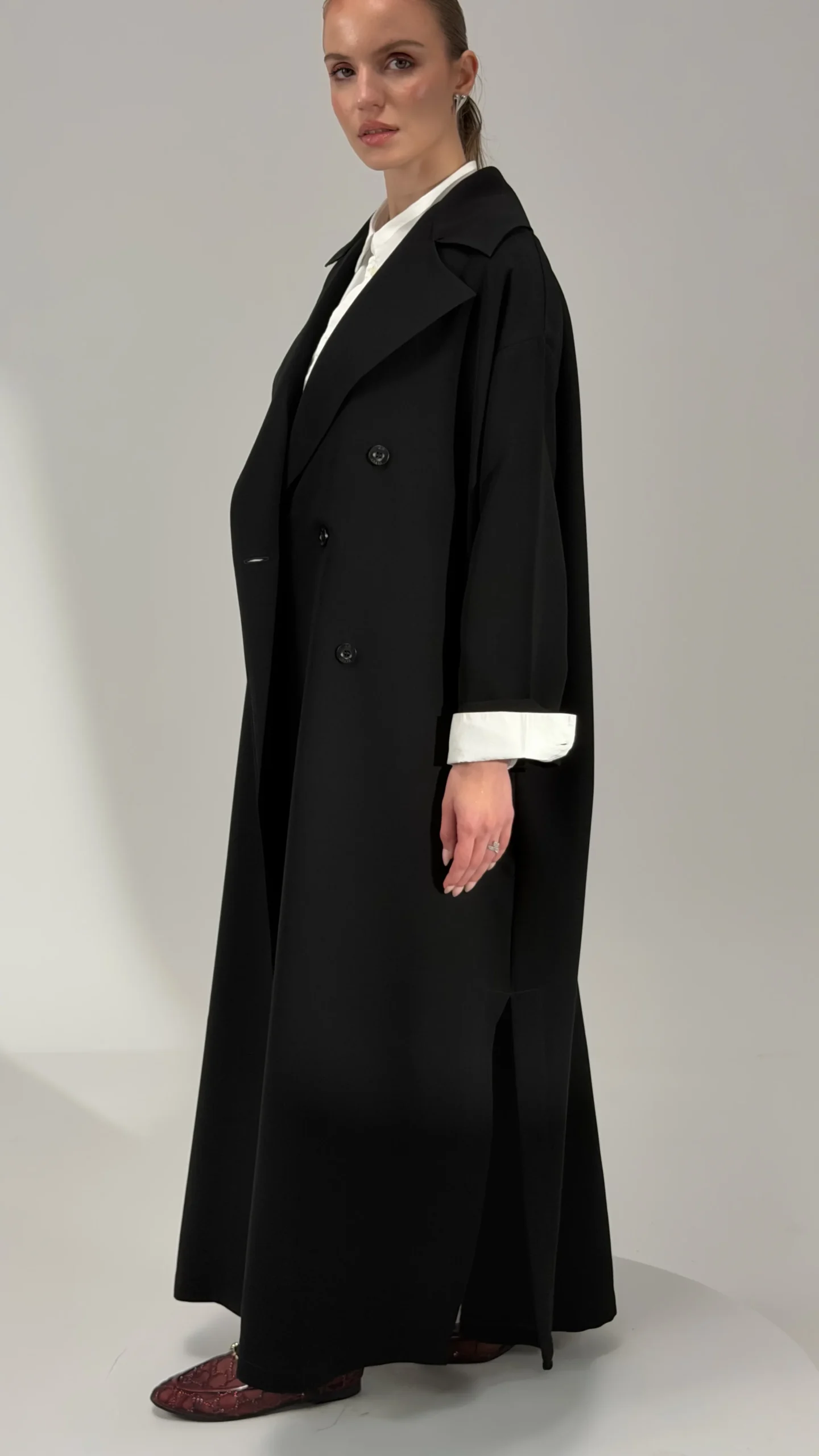 * ياقة عريضة وتفاصيل أزرار تعطيها فخامة واضحة