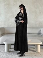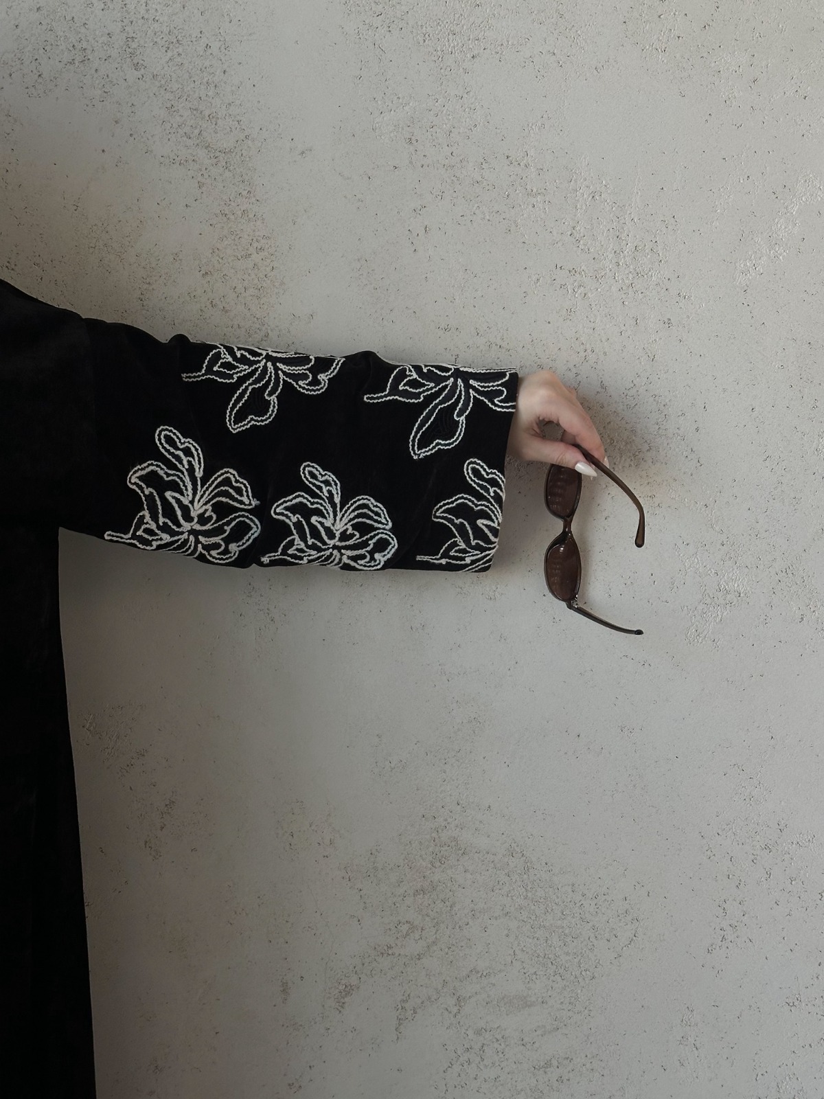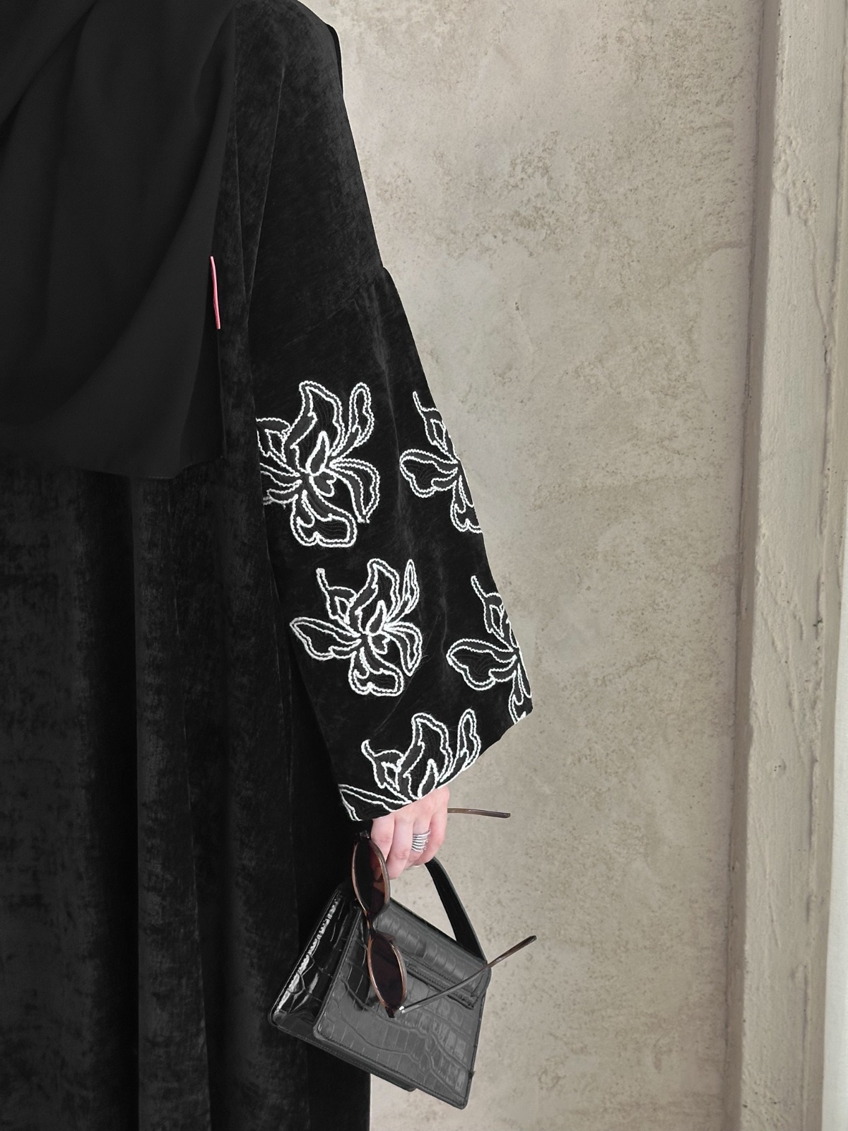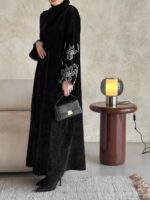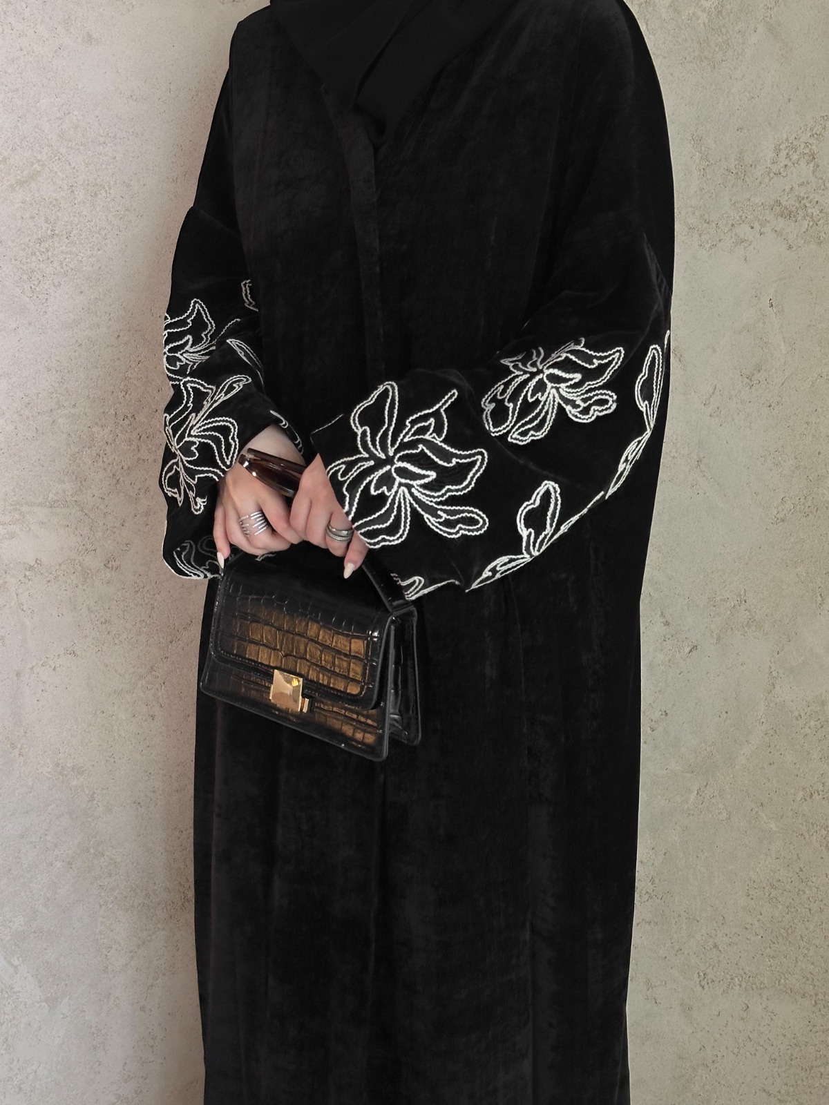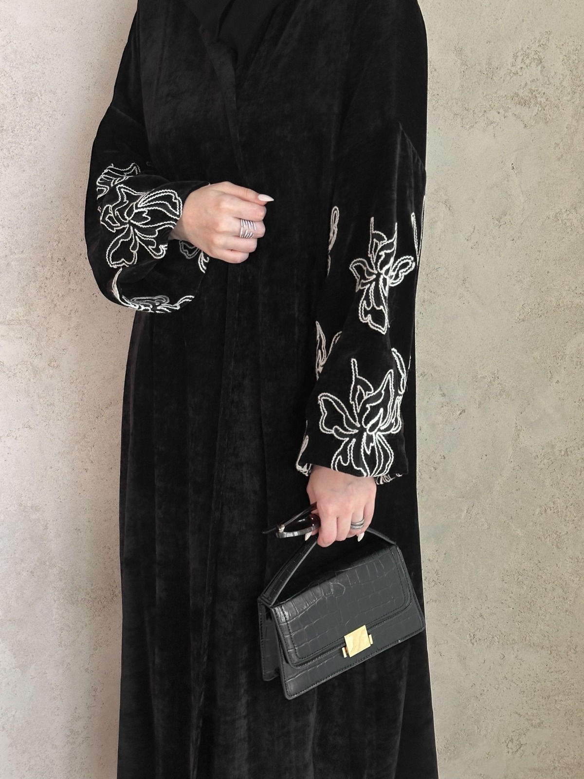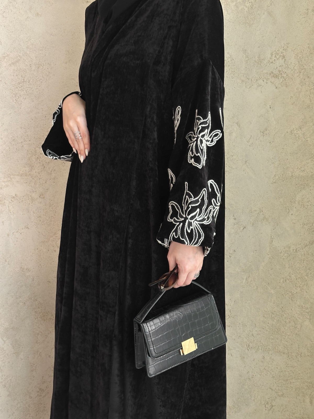 عبايه بشت مخمل تصلح عبايه وتصلح بشت مناسبات مطرز تطريز بارز عالاكمام مبطنه من داخل ومبطنه عالاكمام